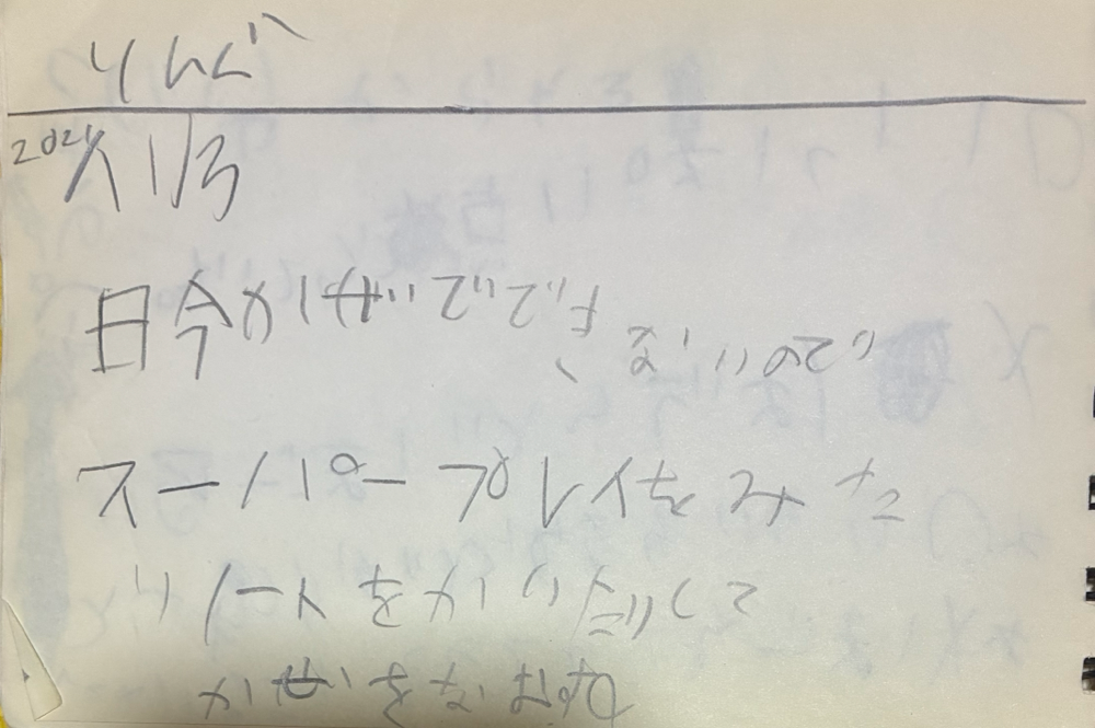 今日風邪でできないので、スーパープレイを見た。ノートを書いたりして風邪を治す。