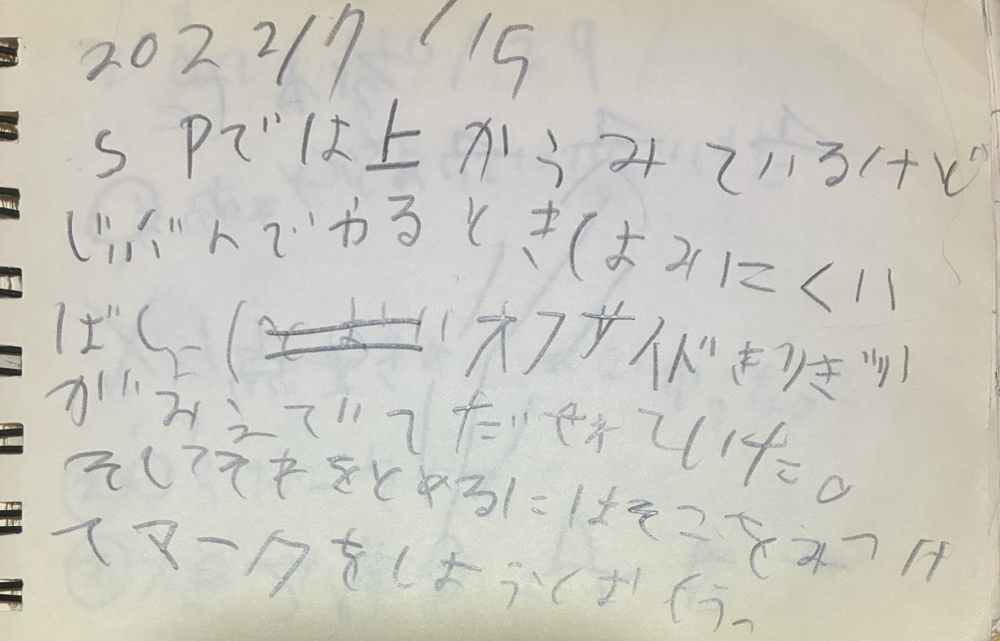 SPでは上から見ているけど、自分でやる時は見にくい場所(オフサイドギリギリ)が見えていて出せれていた。