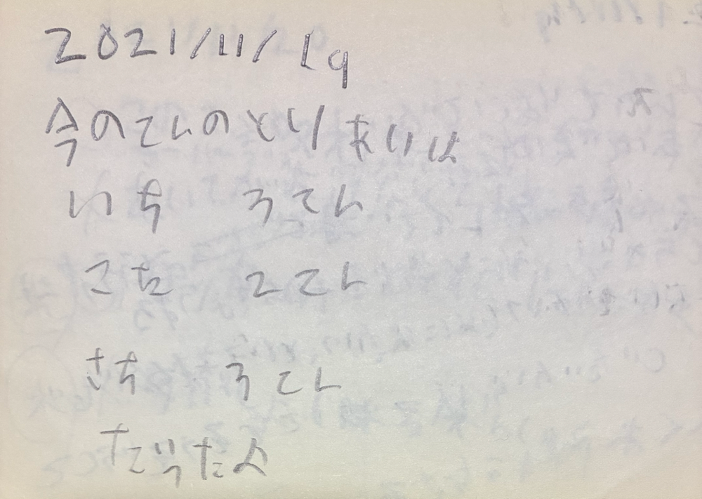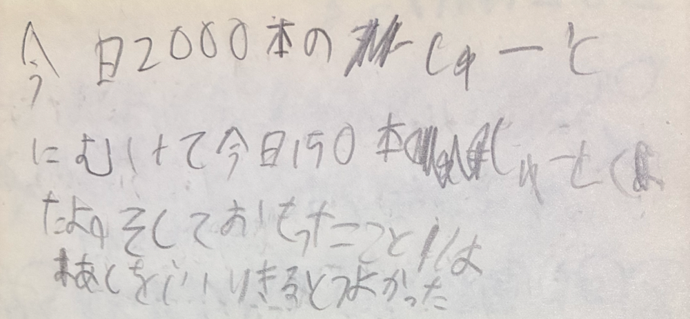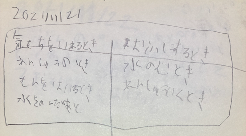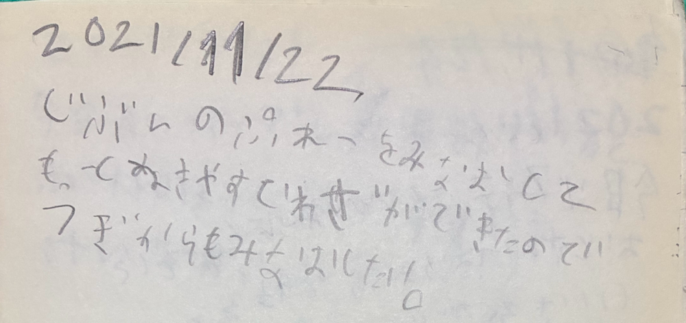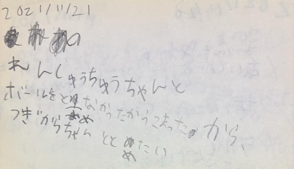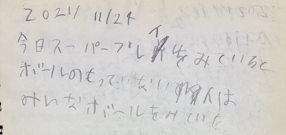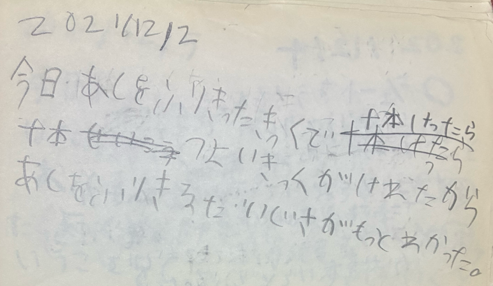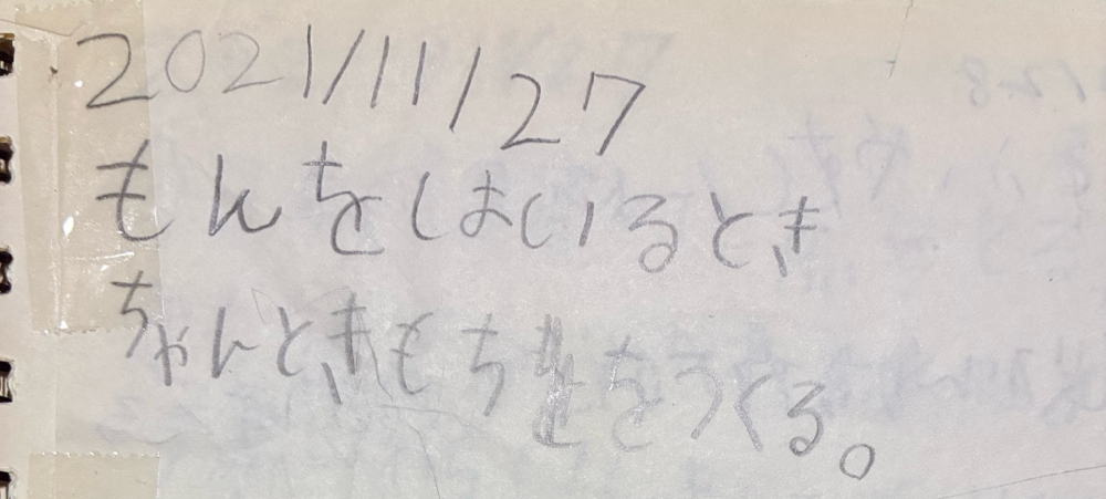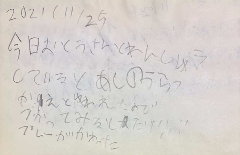 今日リフティングの練習をして、お父さんに「おちつけ」と言われておちつくと、良い記録ができたので、今日おちつくことの大事さをもっと知った。