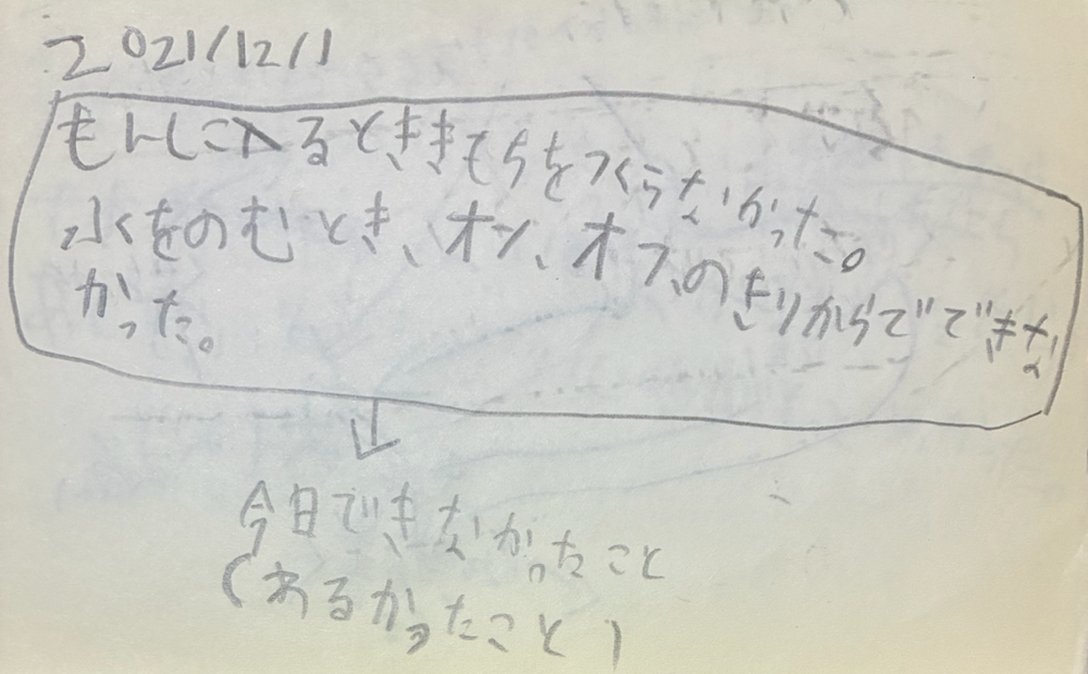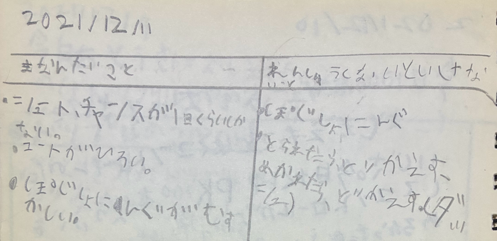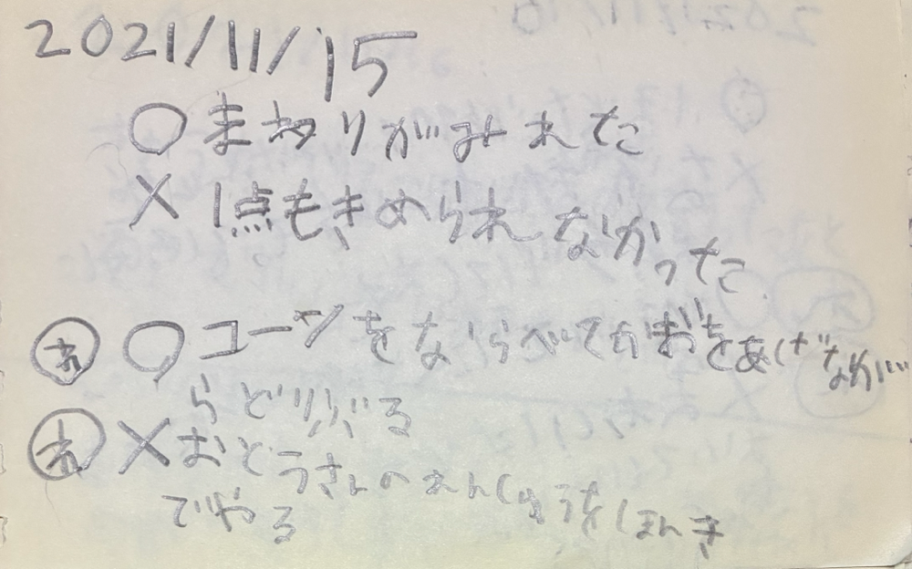 お父さんから自分が苦手なところを探すことを教えてもらったので、オフの日はそのことを書こうと思った。
