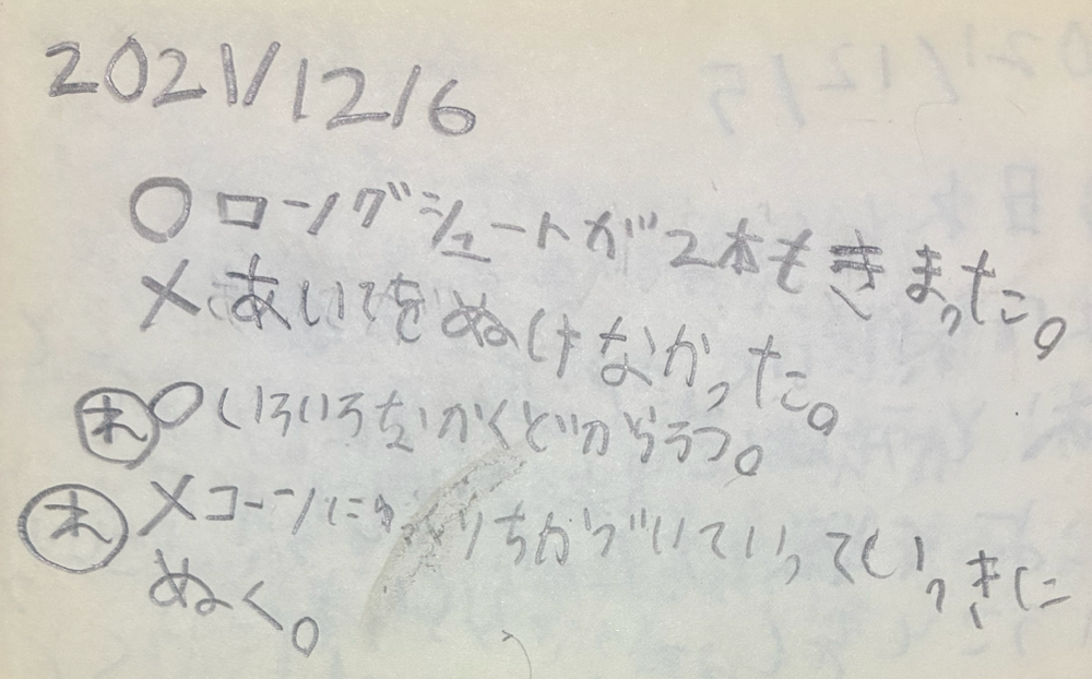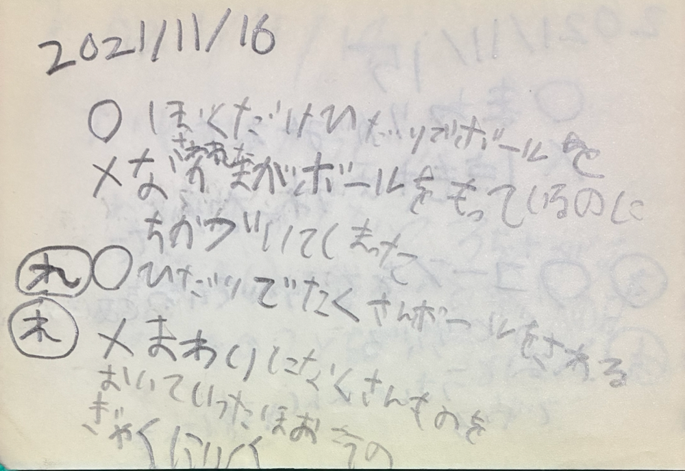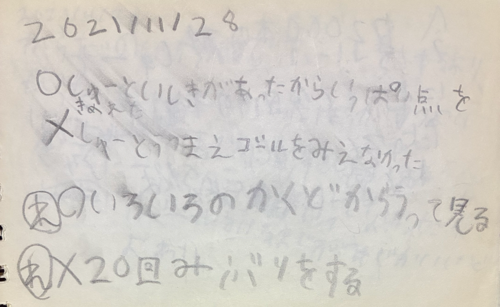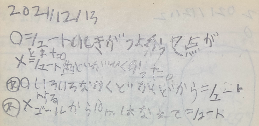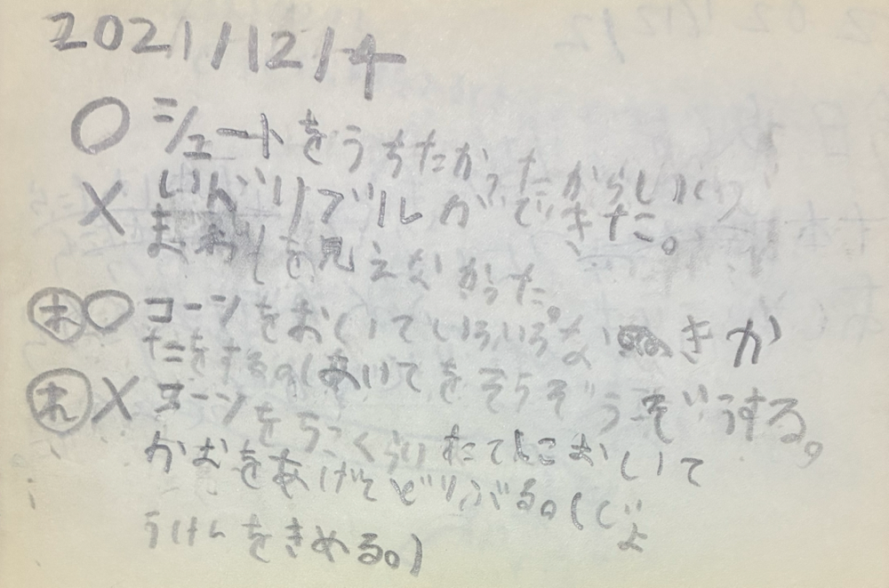 ○ この前言われたことができたし、この前キーパーで前に出すぎと言われた